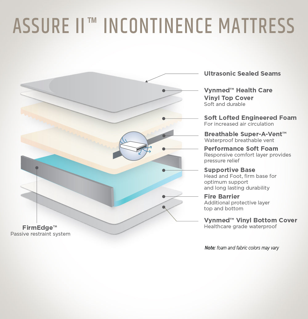 | Features | Assure II™ Incontinence | Advanced Care™ Incontinence | Firm/Soft Incontinence | Therapeutic Memory Foam Incontinence |